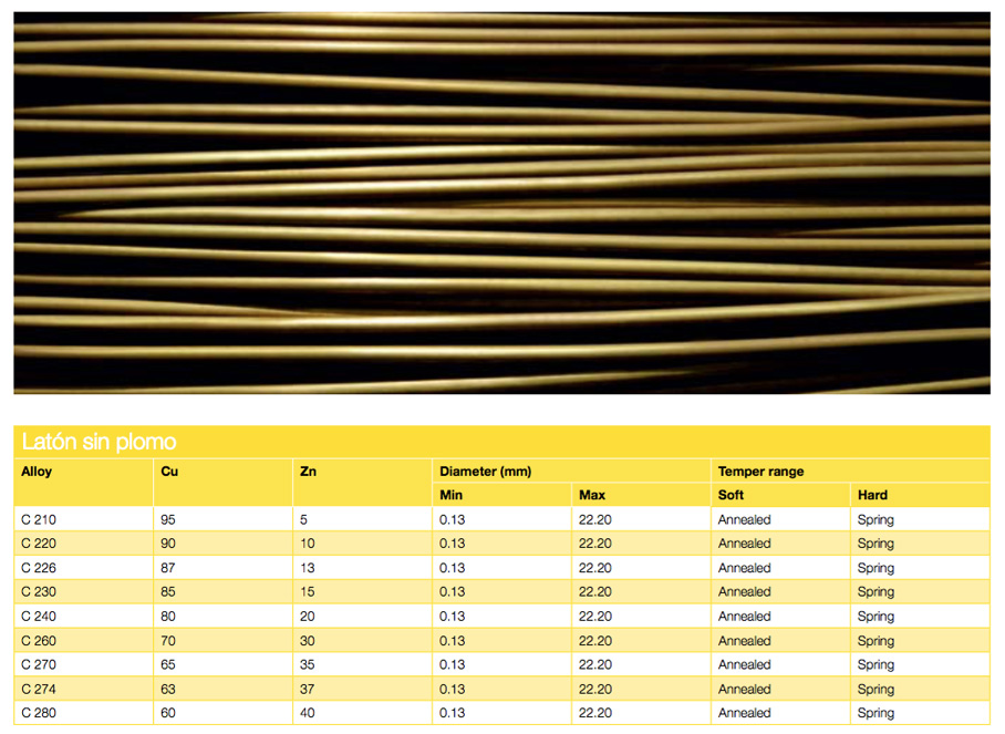 Existe una gran variedad de aleaciones de latón. Las más comunes son la C 260 y C 270 que contienen 70-30% y 65-35% de cobre-zinc respectivamente. Otro tipo de aleación menos común pero muy utilizada es la C 230 con una proporción 85-15%. Se aplican en todo tipo de objetos domésticos: tornillos, tuercas, candados, ceniceros y candelabros.